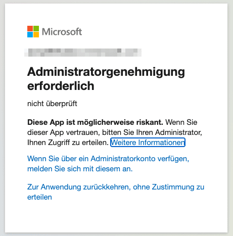 Sollte bei deiner Anmeldung dieses Fenster erscheinen, so brauchst du die Einwilligung eines Systemadministrators, um die Microsoft Teams Integration nutzen zu können.