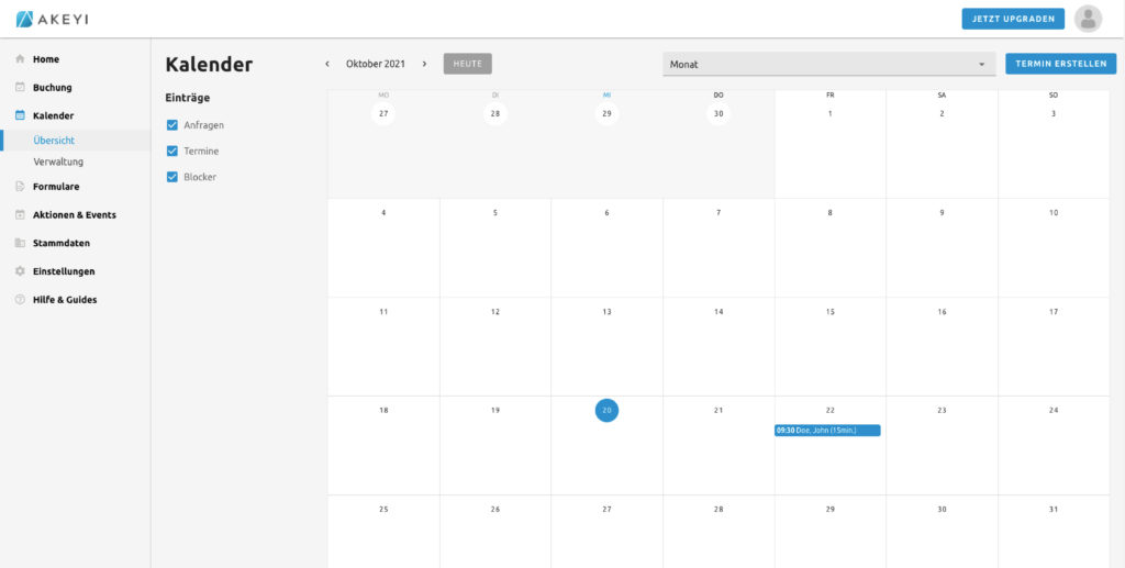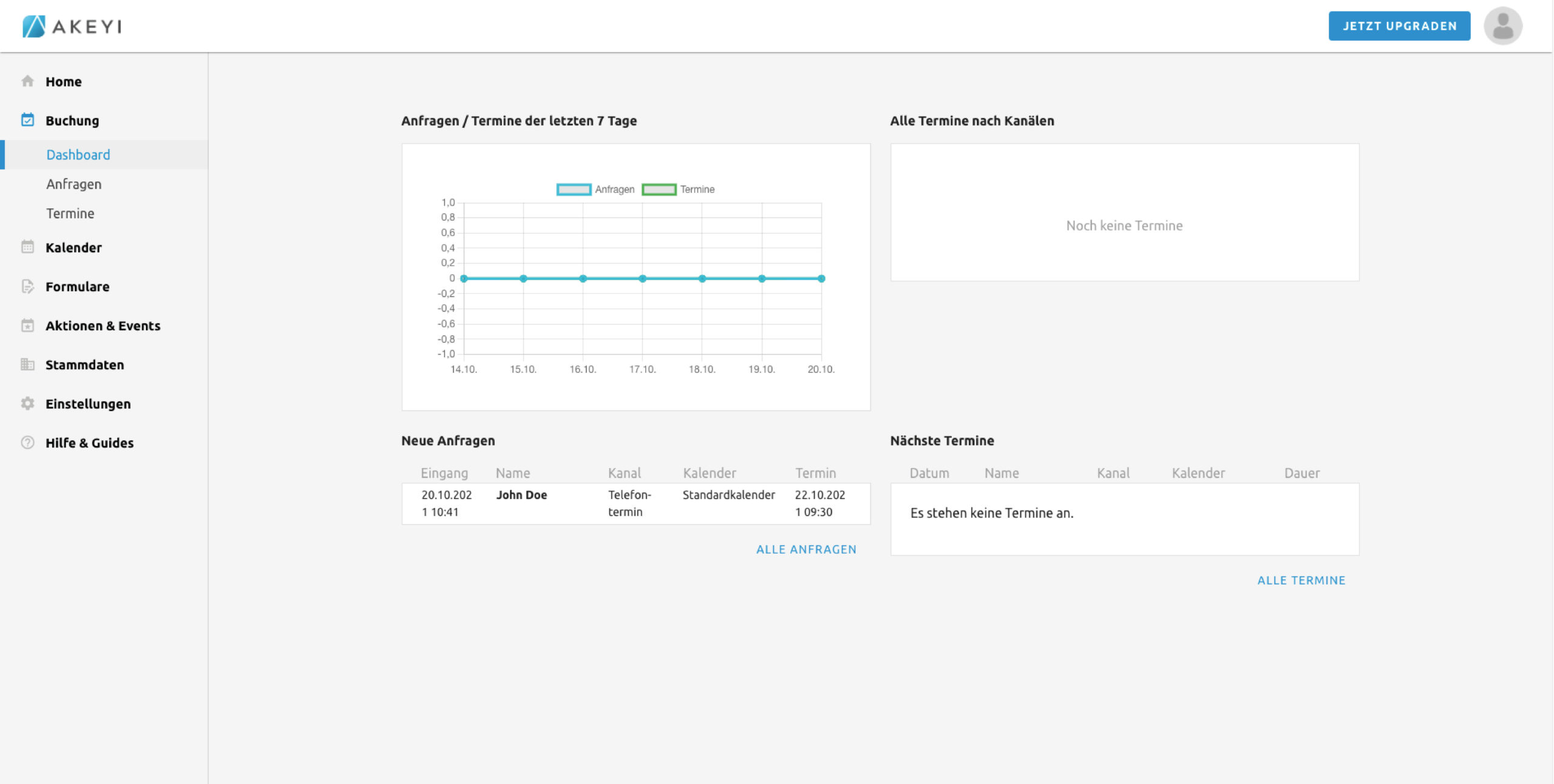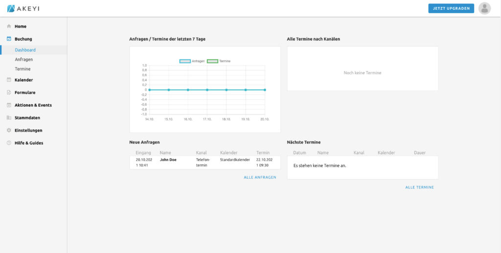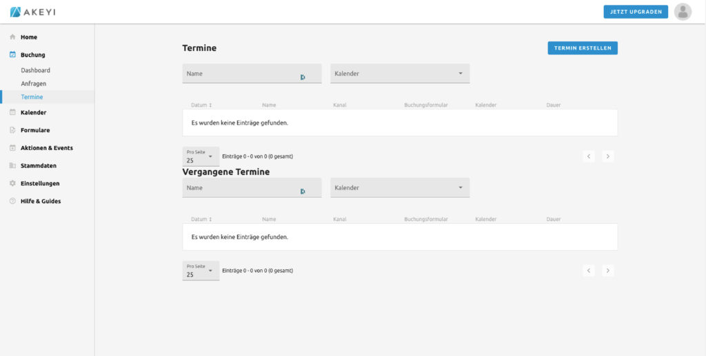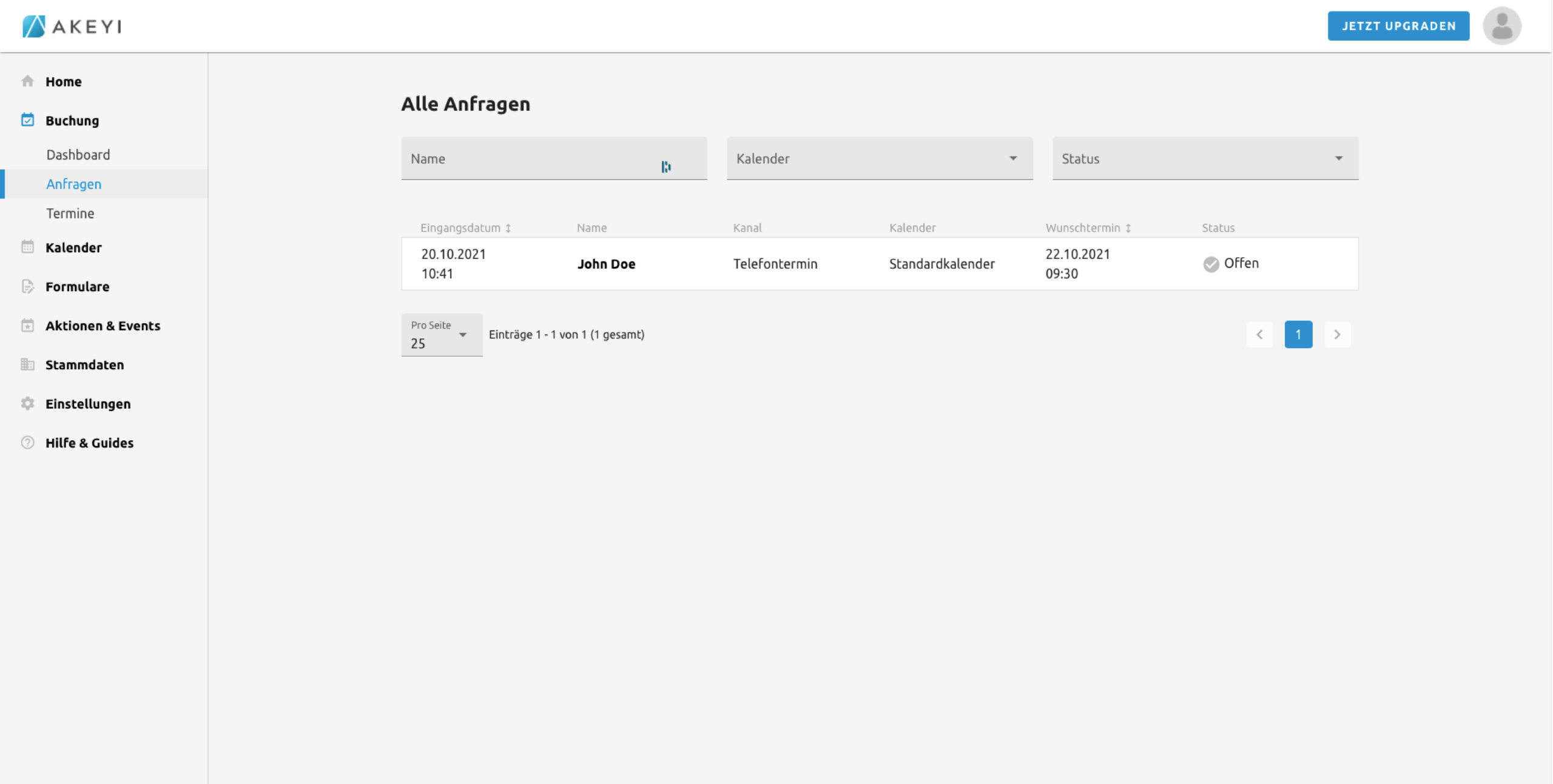 Im Bereich „Anfragen“ findest du eine Liste aller Termine, die Besucher*innen deines Buchungsformulars beantragt haben.