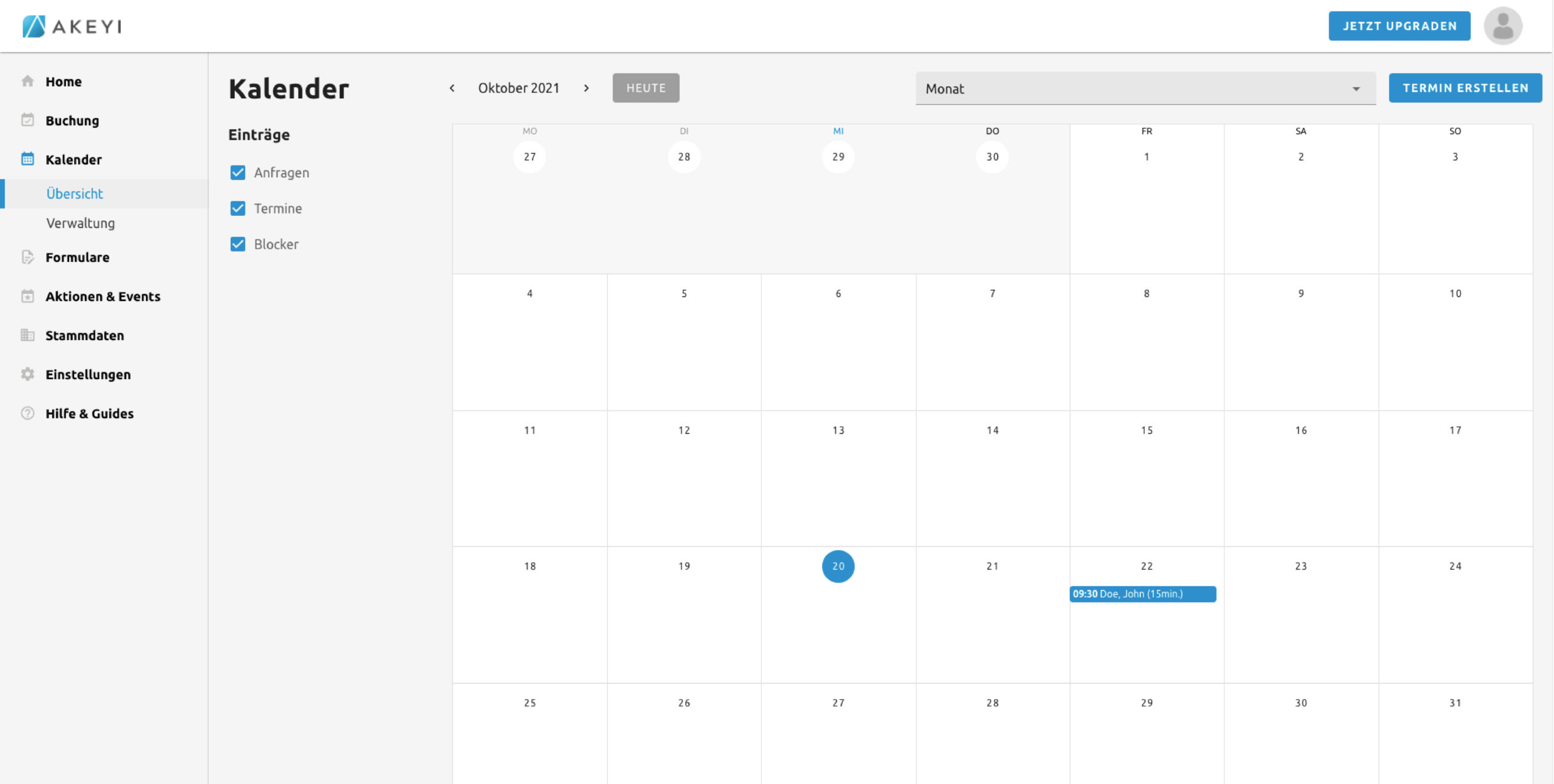 Hinweis: Rufen Sie den Menüpunkt „Kalender“ auf, um eine noch komfortablere Übersicht Ihrer Termine anzuzeigen.