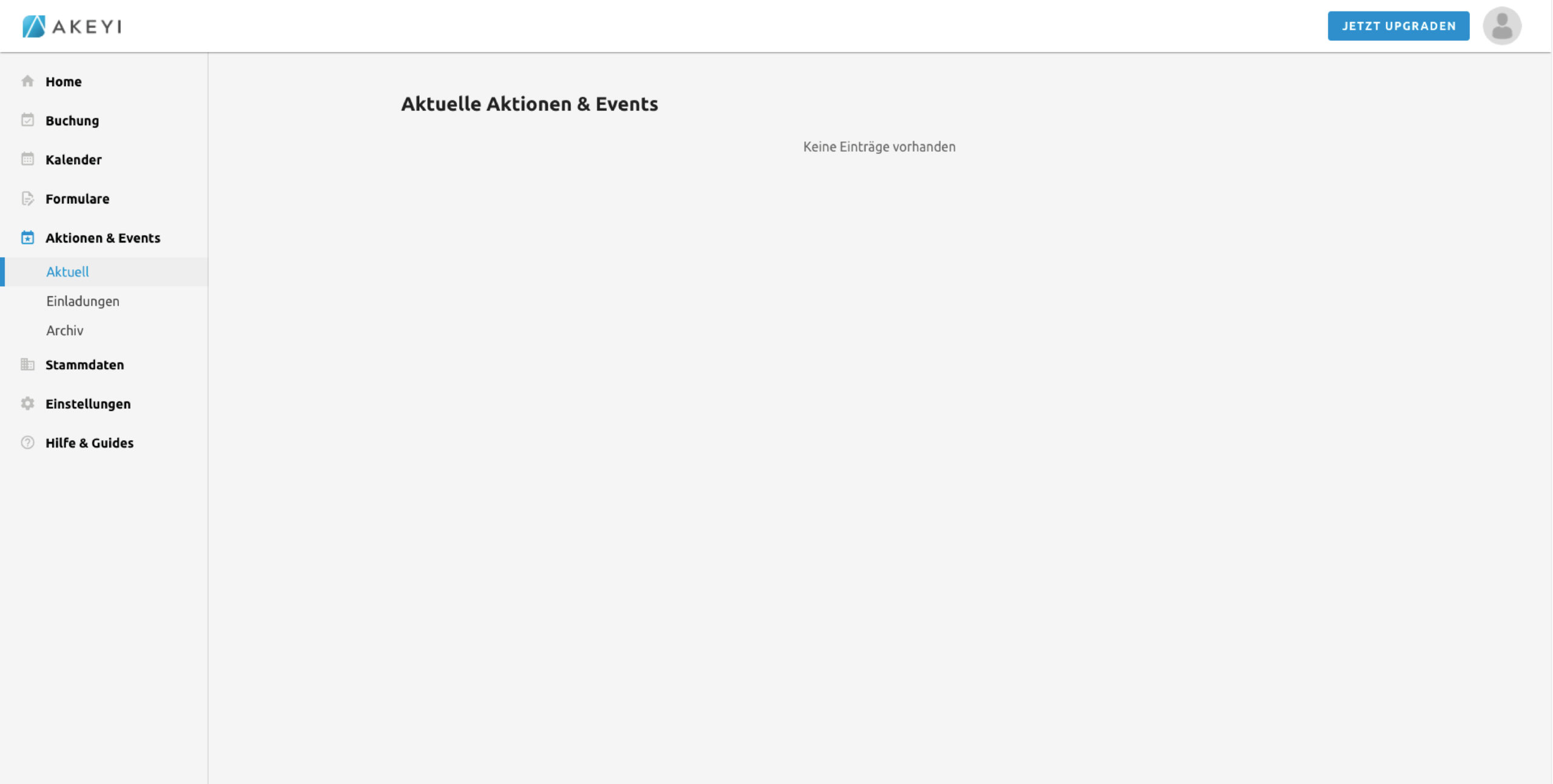 Im Menüpunkt „Aktionen & Events“ findest du Aktionen an denen du mit deinem AKEYI-System teilnimmst. Dabei kann es sich um Azubi-Speed-Datings, Online-Marktplätze oder andere digitale Events handeln.