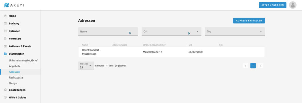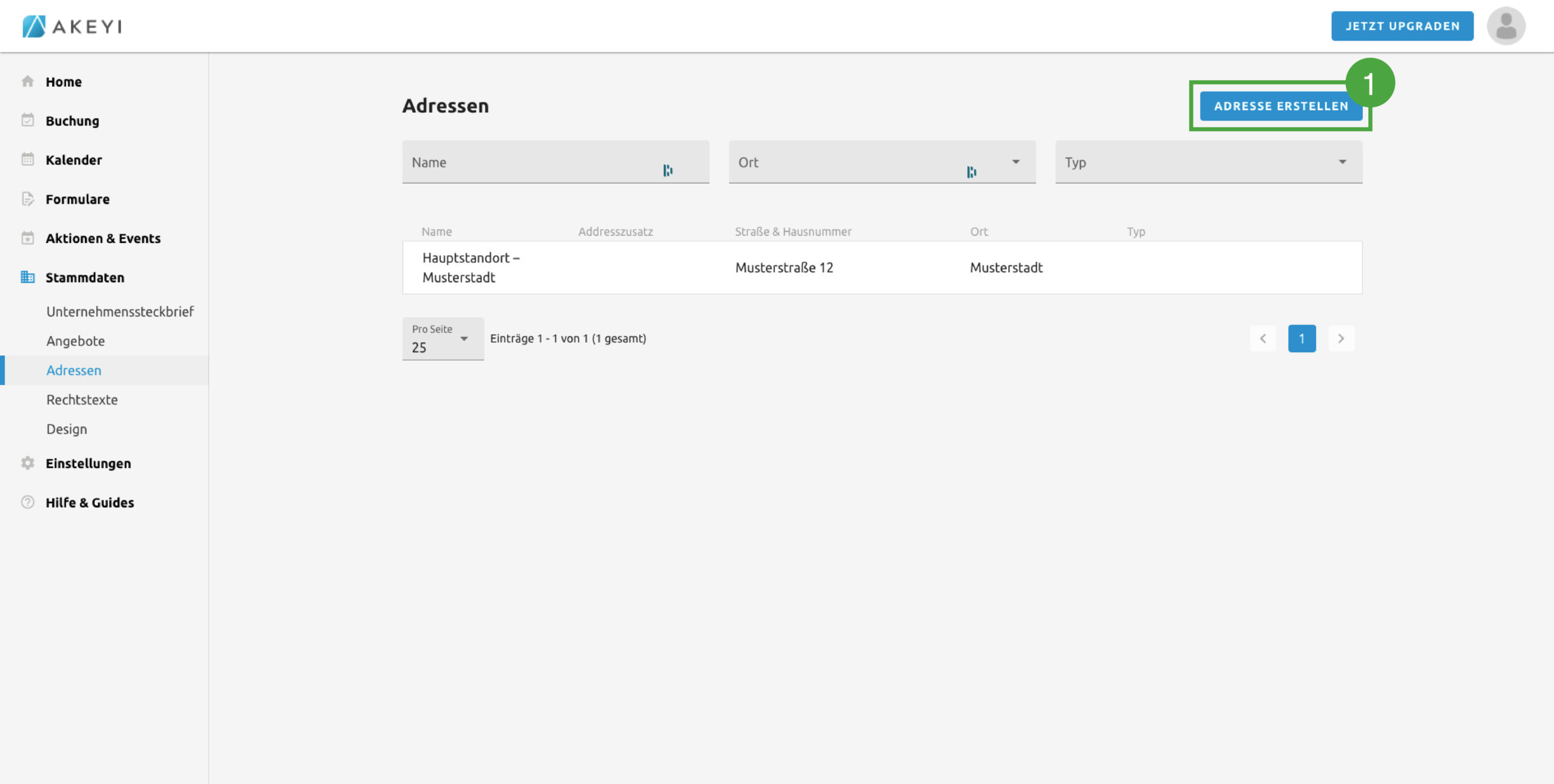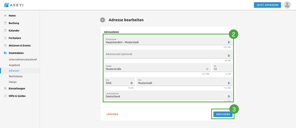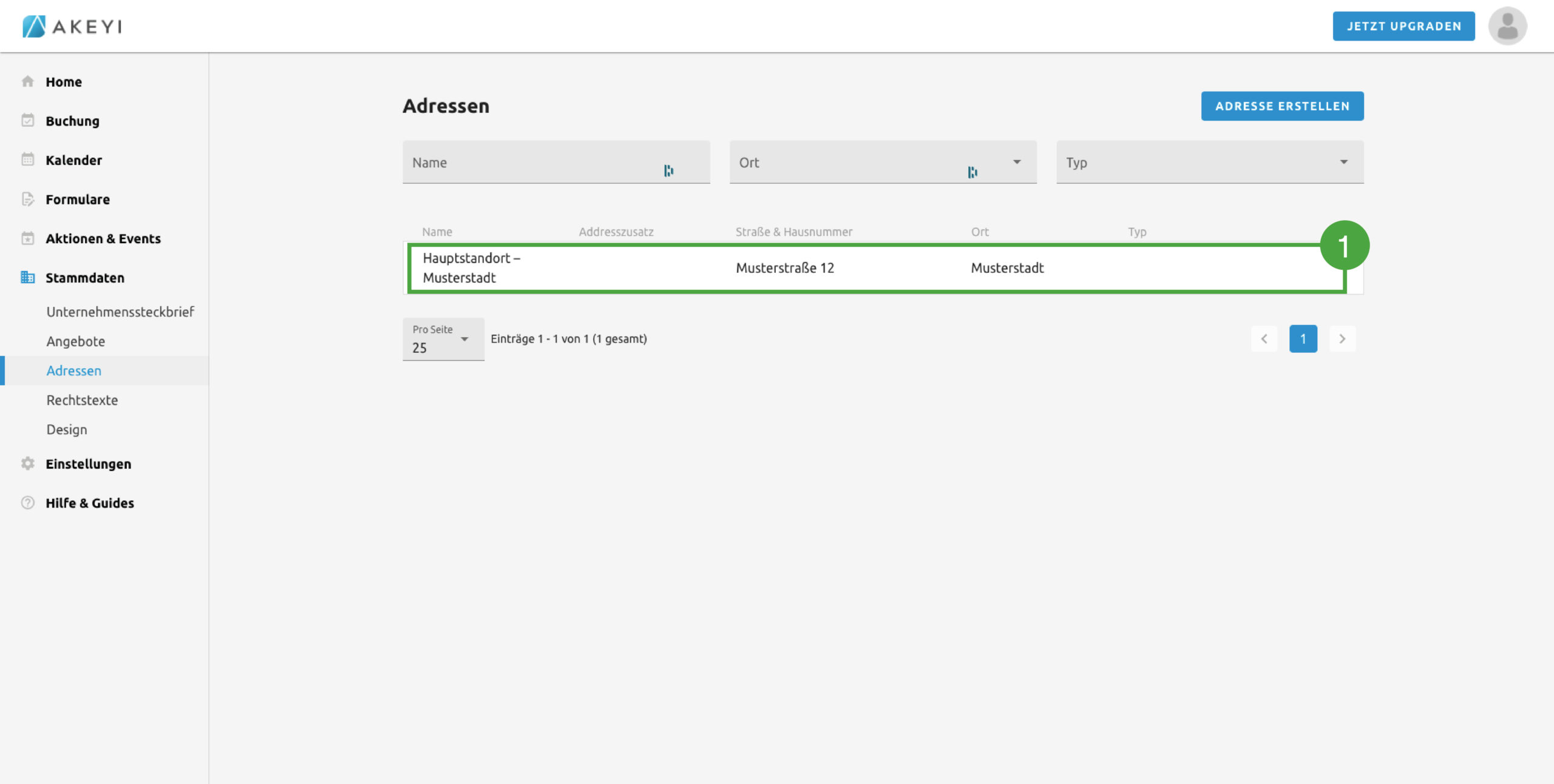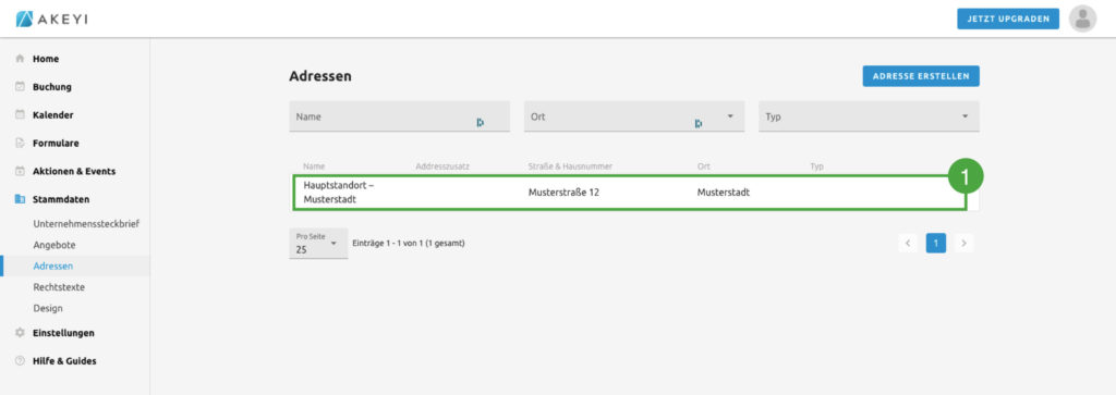 Für die Standardadresse gehst du zum Menüpunkt “Unternehmen” und dort zum Bereich „Steckbrief„. In diesem Guide kannst du genaueres dazu nachlesen.