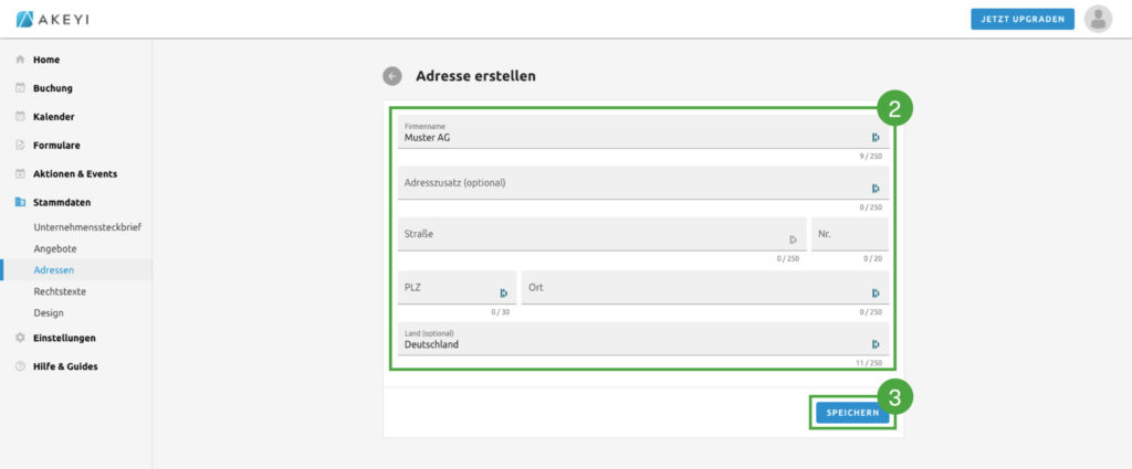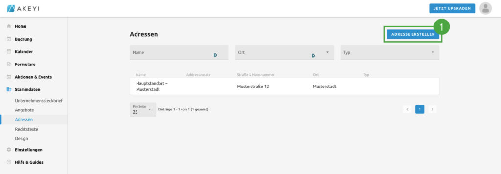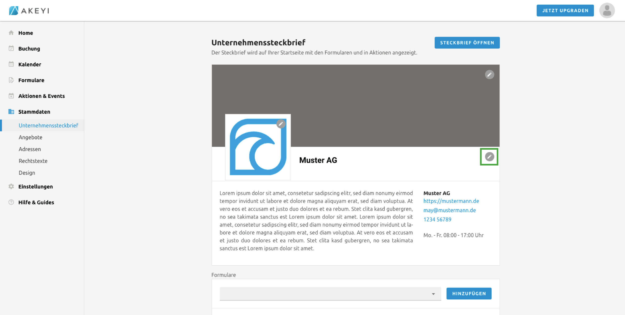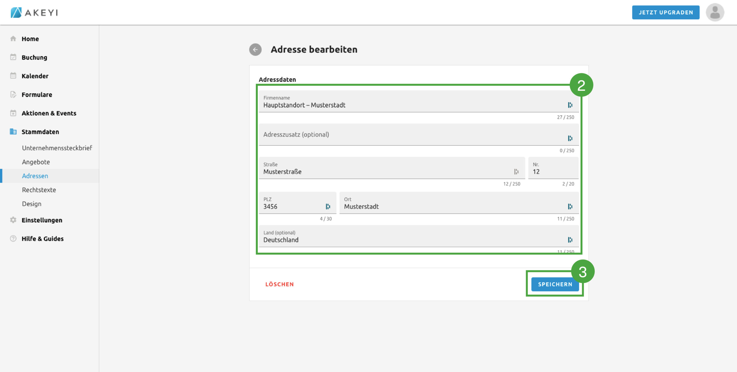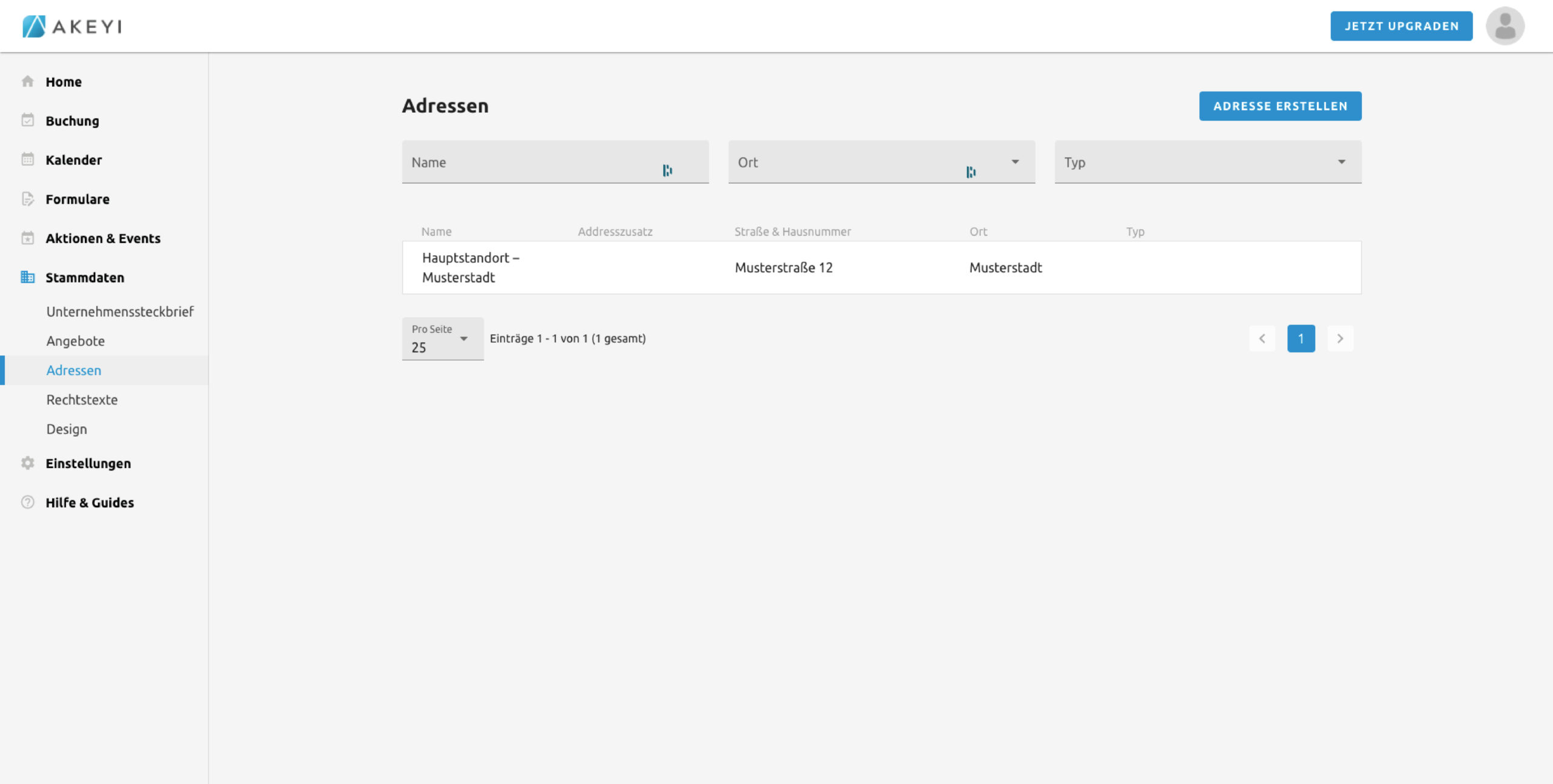 Für die Standardadresse gehst du zum Menüpunkt “Unternehmen” und dort zum Bereich „Steckbrief„. In diesem Guide kannst du genaueres dazu nachlesen.