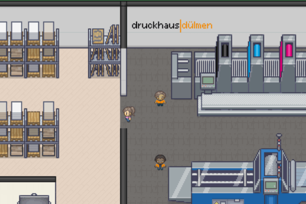 Während des Games lernen die Spieler*innen die unterschiedlichen Aufgaben im Druckhaus kennen. Sie erhalten Einblicke in kreative Prozesse, technische Abläufe und organisatorische Herausforderungen, die den Arbeitsalltag im Druckbetrieb ausmachen.