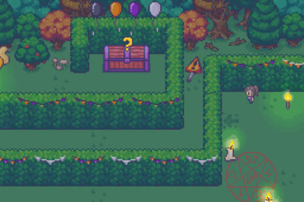 Schlüpfe in dein Lieblingskostüm, sammle schaurige Luftballons und erkunde die geheimnisvollen Gänge eines verwinkelten Labyrinths. Doch Vorsicht – hinter jeder Ecke könnte ein neues Rätsel oder eine überraschende Herausforderung lauern. Und was mag sich nur in der mysteriösen Schatztruhe tief im Labyrinth befinden? Löse das Rätsel und finde es heraus!
