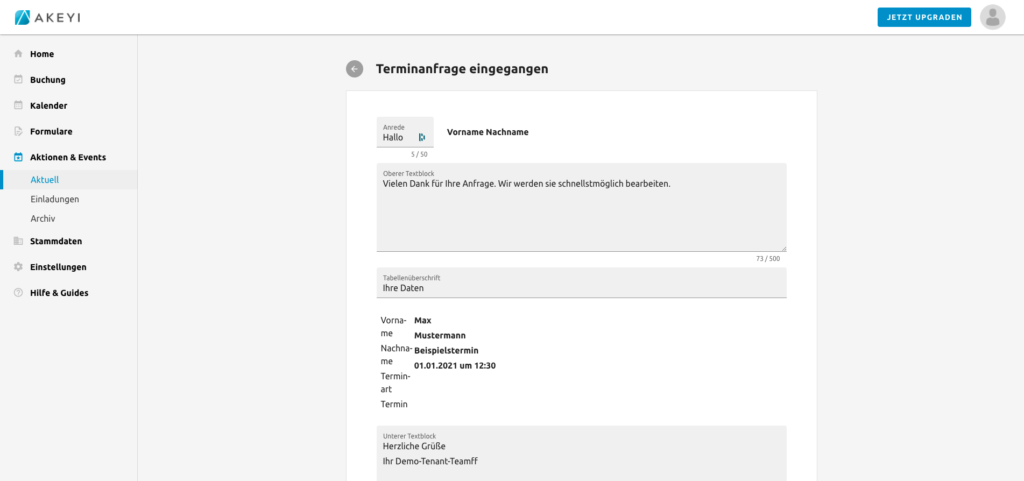 Bitte beachte nur, dass ein Teil der E-Mail automatisch generiert wird. Du solltest deshalb alle vorgesehenen Felder korrekt ausfüllen.